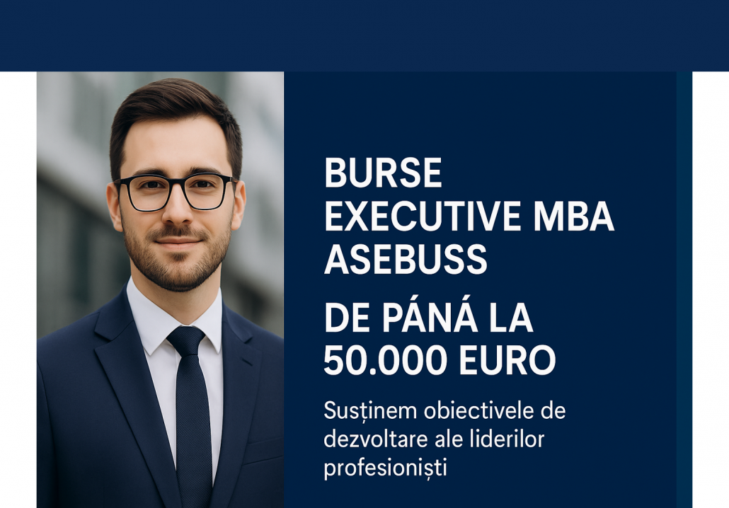 Pentru a susține acest parcurs de excelență, ASEBUSS lansează în luna octombrie 2025 programul de burse Executive MBA, oferind candidaților selectați o bursa de până la 5.000 euro din taxa de școlarizare.